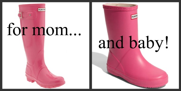 Another FAVORITE way of mine to wear this color: Hunter Wellies in fuschia for both mom ($125) and baby ($49.95)! Available at nordstrom.com.