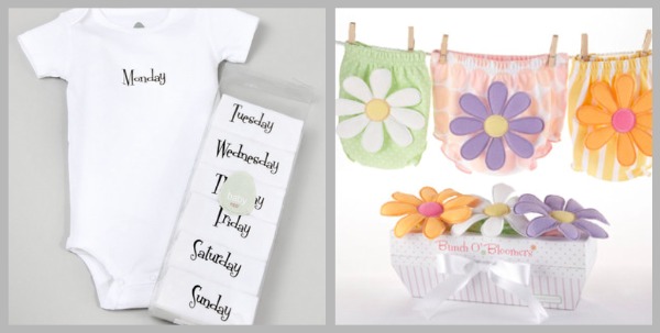 Baby Eggi Days of the Week onesies. Baby Aspen ‘Bunch ‘O Bloomers’.