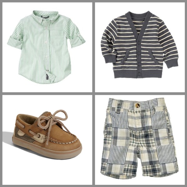 Stripe button up, stripe cardigan, and patchwork shorts available in stores and at gymboree.com. Sperry Top-Sider ‘Bluefish’ boat shoe from nordstrom.com.