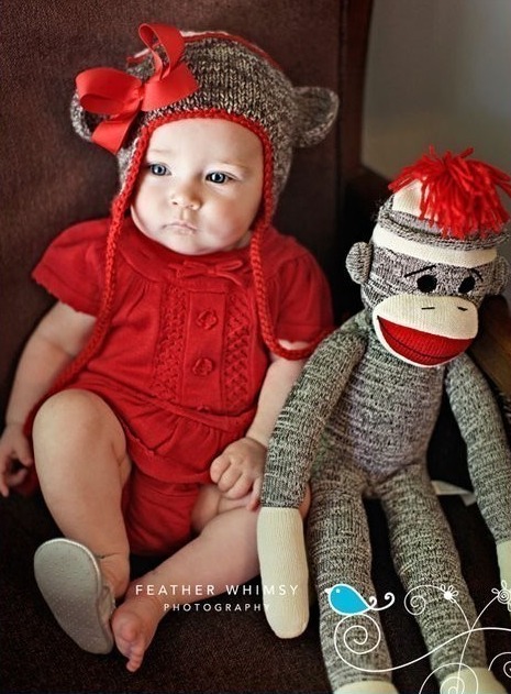 One of my latest fabulous etsy finds is a darling little shop called Grandma Made This. They specialize in handmade knit and crocheted baby and children’s hats. This sweet little sock monkey with a hair bow is one of my favorites!
