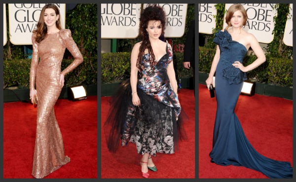 A few more of my favorites from the red carpet (although not currently sporting a bump): Anne Hathaway (who will be hosting this year’s Oscar’s) looked stunningĀ in Giorgio Armani Prive. Always true to her own unique (albeit somewhat kooky) style, ‘The Kings Speech’ star Helena Bonham Carter accessorized the Vivenne Westwood dress with mismatched shoes… and it’s just crazy enough that I kinda love it! Also amazing, Amy Adams’ navy Marchesa gown perfectly complimented by her soft hair and makeup.