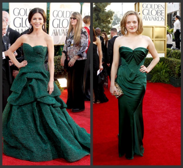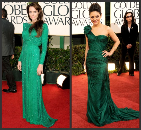 Finally in my little red carpet review… these stars were certainly seeing shades of jade and I’m perfectly okay with that! Catherine Zeta-Jones as beautiful as ever in Versace. Elisabeth Moss (of Madmen) in custom Donna Karan. Angelina Jolie sparkled in this emerald green Atelier Versace. Mila Kunis, also nominated for her role in ‘Black Swan’ wore her one-shouldered Vera Wang gown beautifully.
