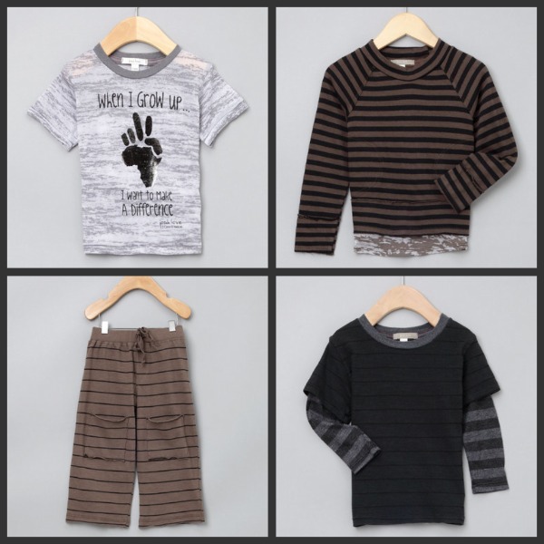 For the boys: (clockwise) ‘When I Grow Up’ Tissue Tee. ‘Shane’ Stripe Sweatshirt. ‘Billy’ Rugby Tee. ‘Micah’ Pin Stripe Pant. Shop the boys collection here.
