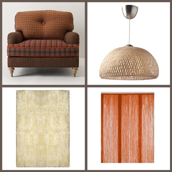 A few final additions to make this blue and orange nursery a cozy spot for mom, dad, and baby: 1. I LOVE this colorblock chair from anthropologie. 2. Pendant ceiling lamp from IKEA. 3. Cozy, plush sheepskin rug from west elm. 4. Fabulous Bacati orange string panel curtains from Babies R Us.