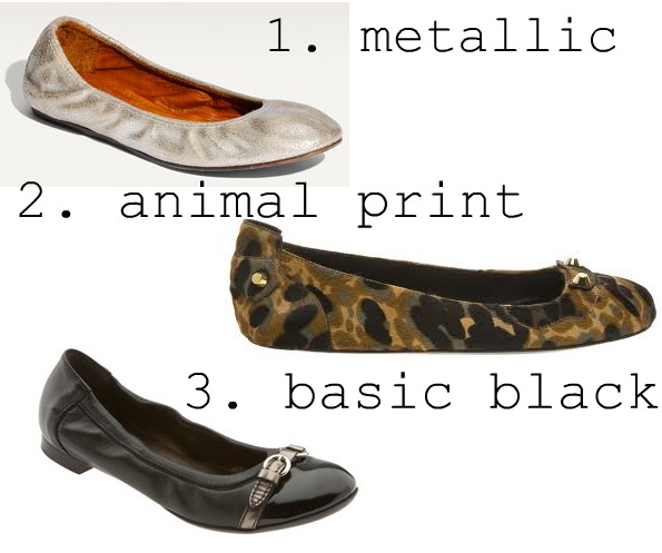 To cover your bases with the flats – include a metallic (a neutral must-have), an animal print (great with everything from denim to a LBD), and a basic comfortable black. I tend to lean towards a ballet flat however this category could be satisfied by anything from a loafer to mocasin to oxford depending on your personal style.