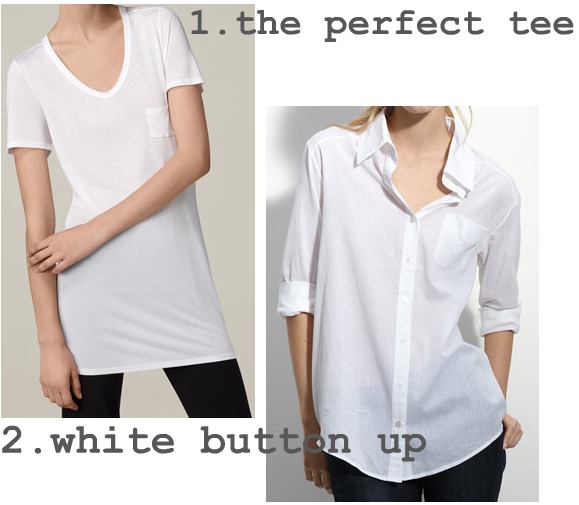 Often overlooked, a perfect tee and crisp white button up can work wonders paired with statement accessories. Tee: T by Alexander Wang White Button Up: Elizabeth & James.