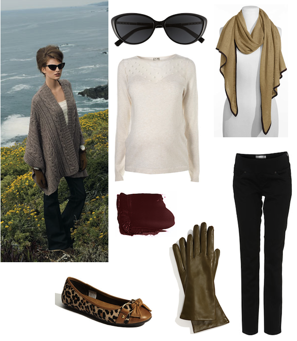 Get the look for a growing bump with these great pieces & cozy layers for Fall: Cat Eye Sunnies (Dior, $295). Cashmere-blend Wrap (Nordstrom, $69.90. Available in 12 colors). Spot Mesh Sweater (Topshop Maternity, $76). Baxter Jeans (Topshop Maternity, $80). Lipcolor in Black Maple (Bobbi Brown, $23). Cashmere Lined Leather Gloves ($68.90. Available in 6 colors). ‘Kendall’ Flats (Sperry Top Sider, $84.95). Cable Knit Swing Poncho (Nordstrom, $128).