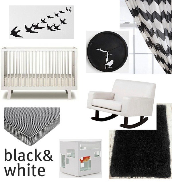 On that note, for the next week we’ll be focusing on two colors often taken for granted when it comes to a nursery color palette: black & white! These two staple neutrals can easily go from dramatic design to a clean backdrop for all the other colorful things in your life. Today I’m kicking off a week of love for two of the bascis, black & white, with a gender-neutral nursery inspiration board.