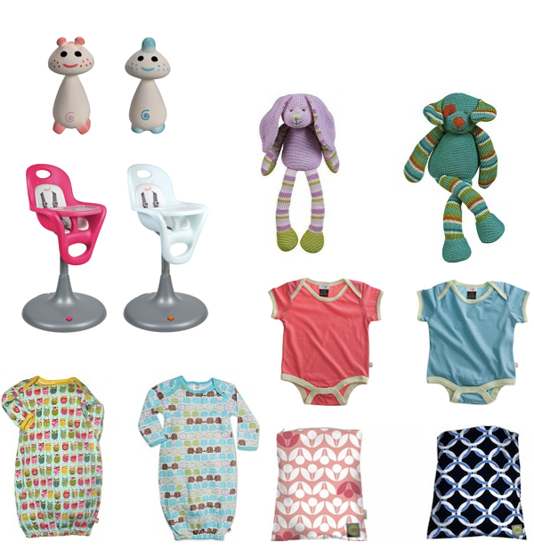 Vulli Soft Toy, Maison Chic Musical Knit Friend, Baby Soy Bodysuits, Itzy Ritzy Wet Happened Bag, Zutano Sleep Gown,  Boon Flair High Chair